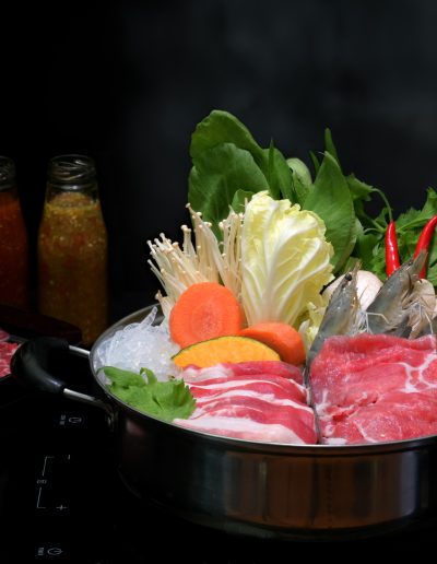 Use your soup ladle to serve cooked items into your soup bowl.Enjoy your delicious hotpot!