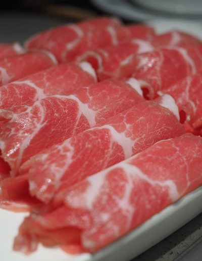 Choose your meats,seafood,and dumplings from our buffet table.